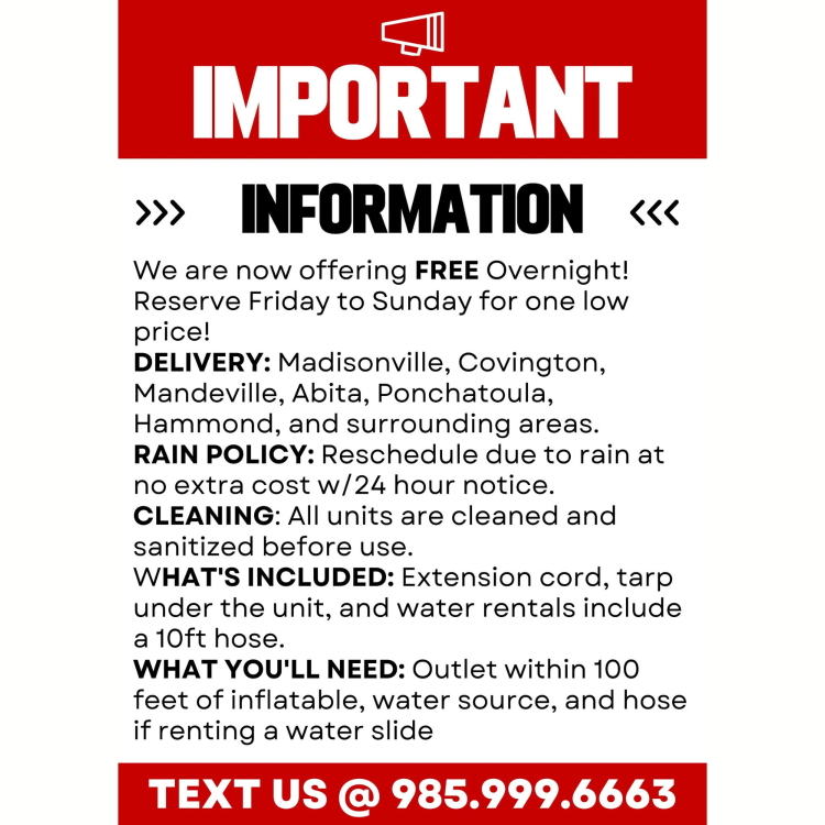 - Water source and water hose if renting a water slide